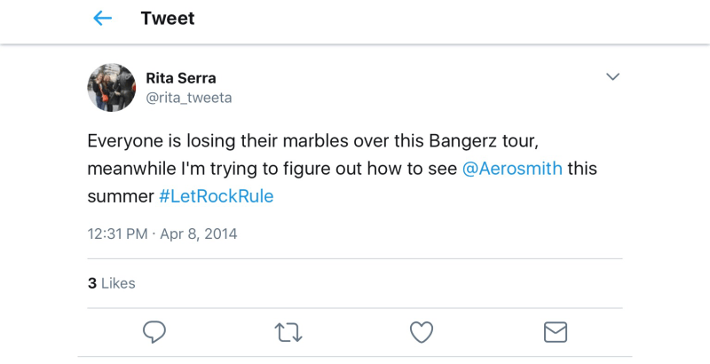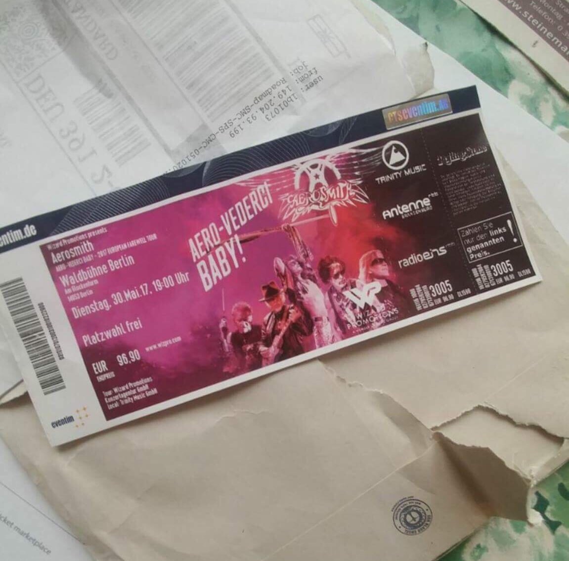 - I bought a ticket to see Aerosmith on their farewell tour in Berlin, but it got lost in the mail.